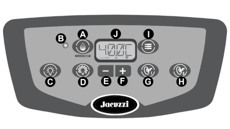 Jacuzzi® J-300™ Collection hot tubs feature a keypad that allows you to control and customise your spa experience. Keep reading to learn how to use the Jacuzzi® J-300™ Collection keypad.
