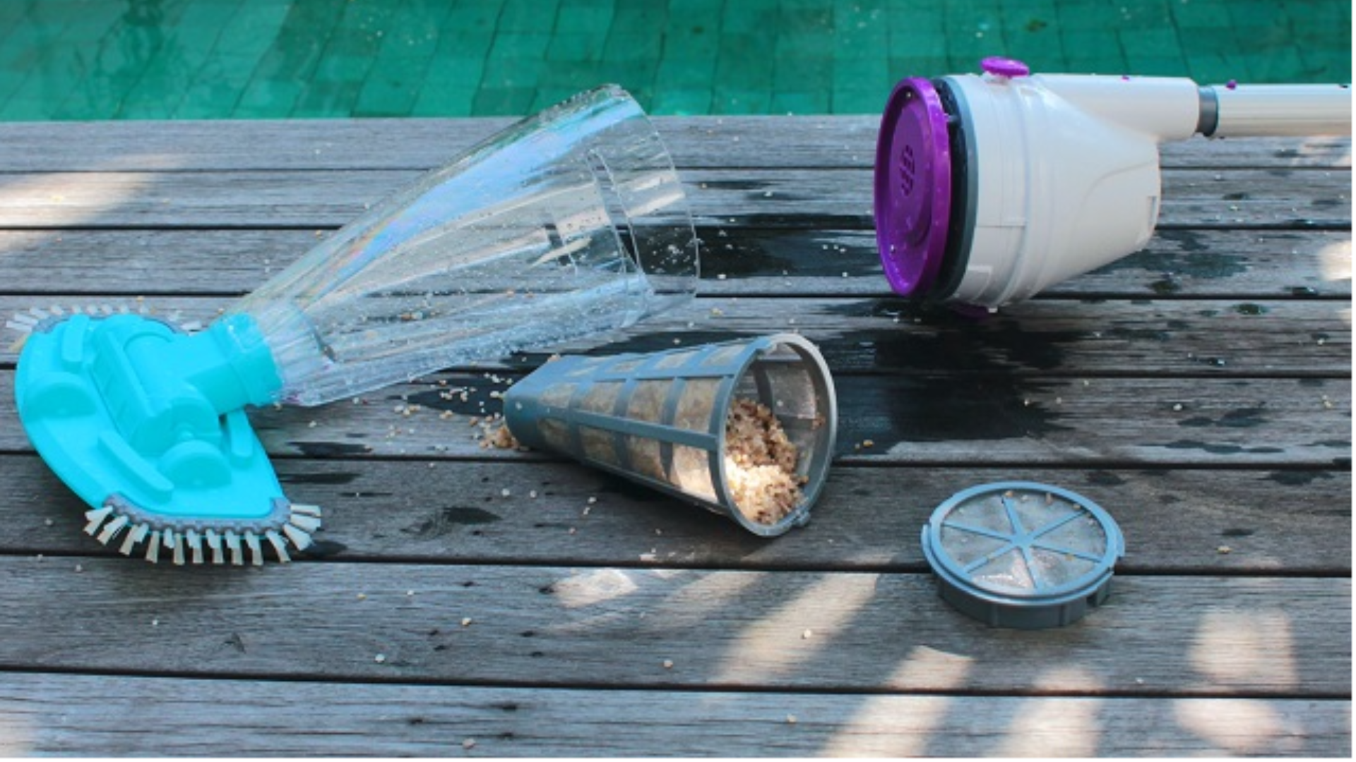 When you release the button, the change in pressure sucks water and debris into the holding chamber, essentially creating a vacuum effect without the need for a motor or an elaborate hose system.