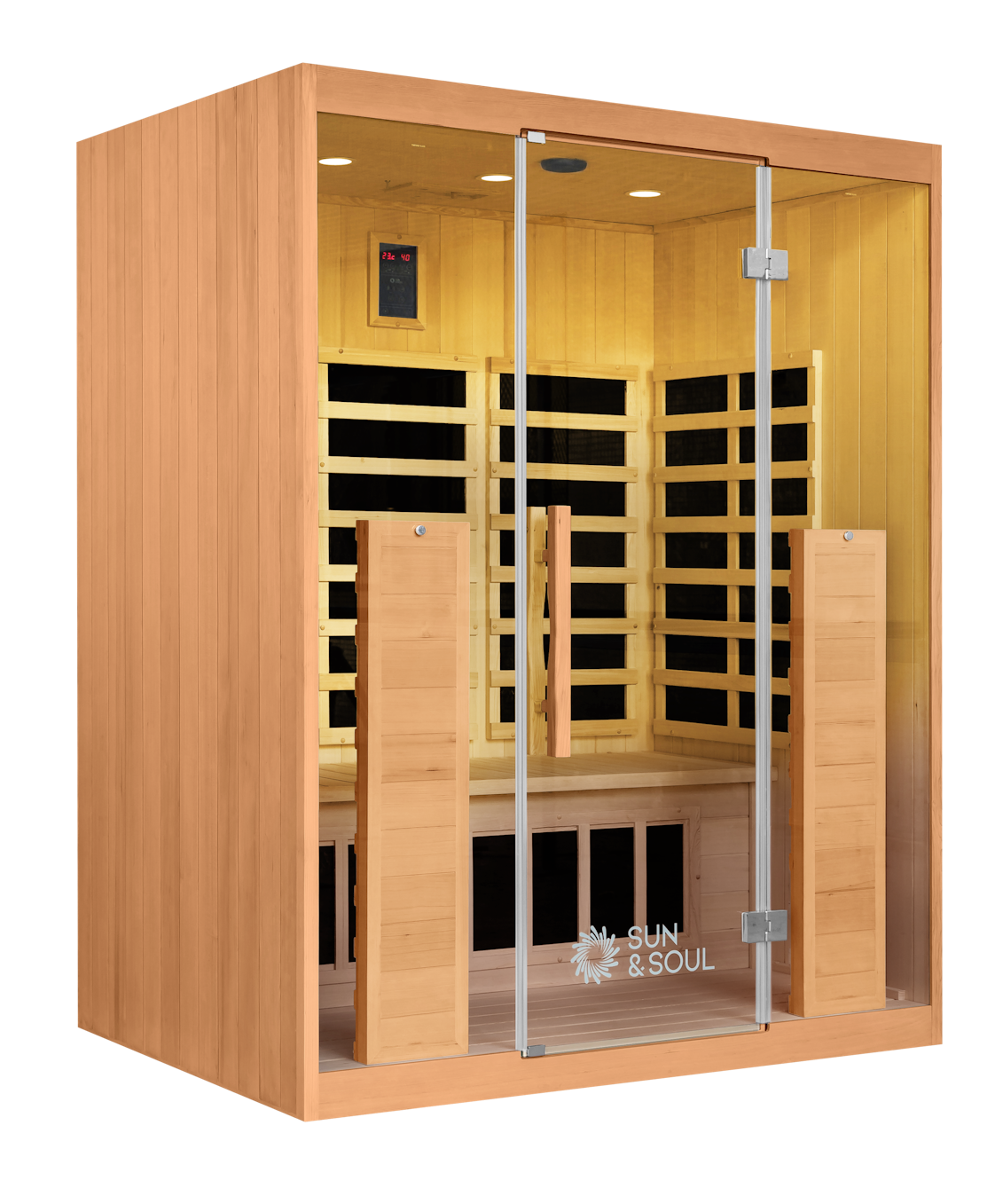 The SUN300™ Infrared Sauna offers spacious comfort for up to three people, combining modern design with advanced wellness technology.